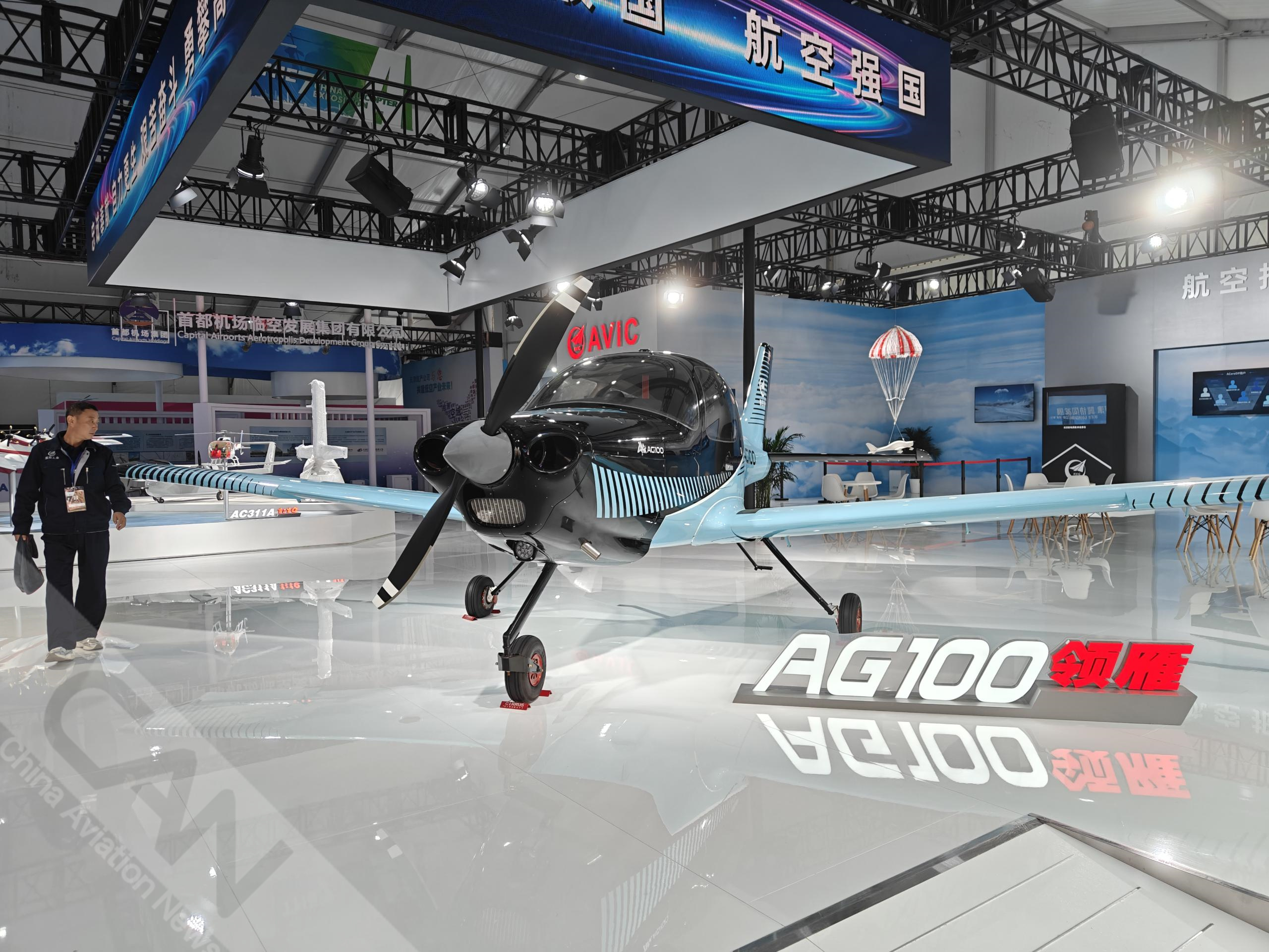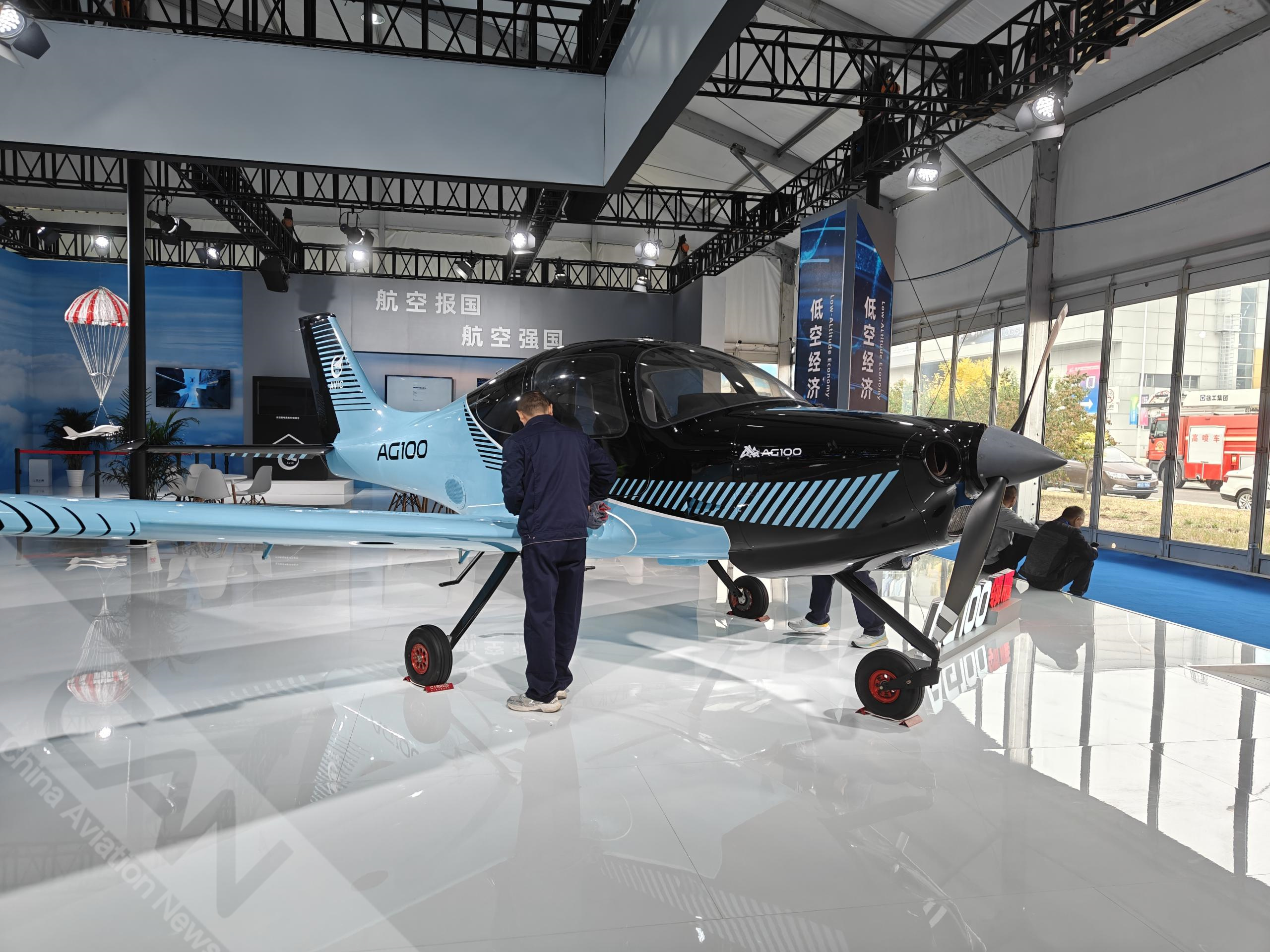 第七届天津直博会即将开幕,来低空经济馆看AG100飞机。该机是一款3座单发飞机,下单翼、低平尾、单垂尾的常规气动布局,全机采用复合材料,配备固定式前三点起落架、活塞发动机、触屏综合航电系统和机械侧杆操纵,选装空调,标配整机降落伞,具有经济性好、可靠性高、安全性优、维护工作量小、培训能力更强等优势。摄影:盖宇斌