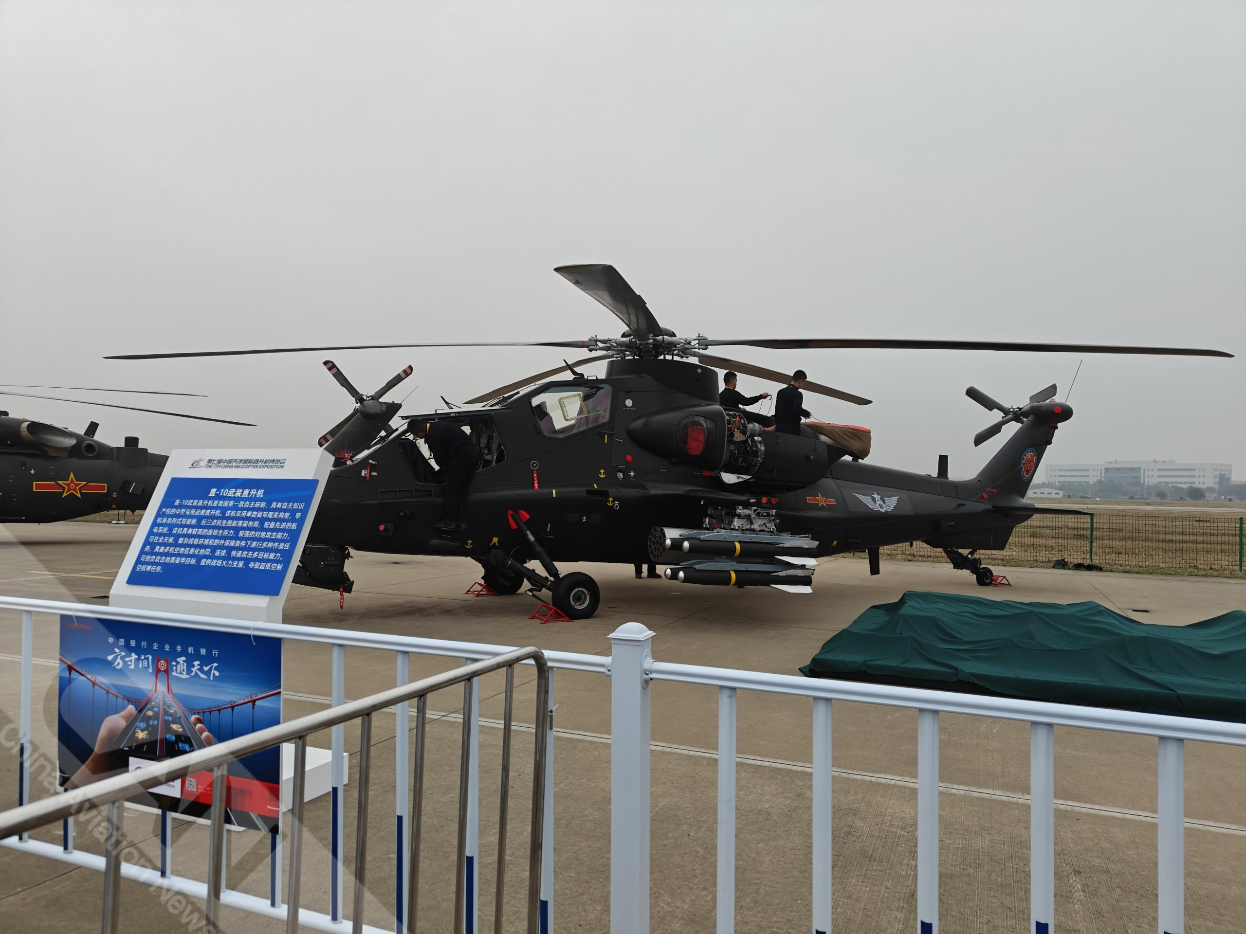 多角度看天津直博会室外静展区直10。直10武装直升机是我国第一款自主研制、具有自主知识产权的中型专用武装直升机。摄影:盖宇斌