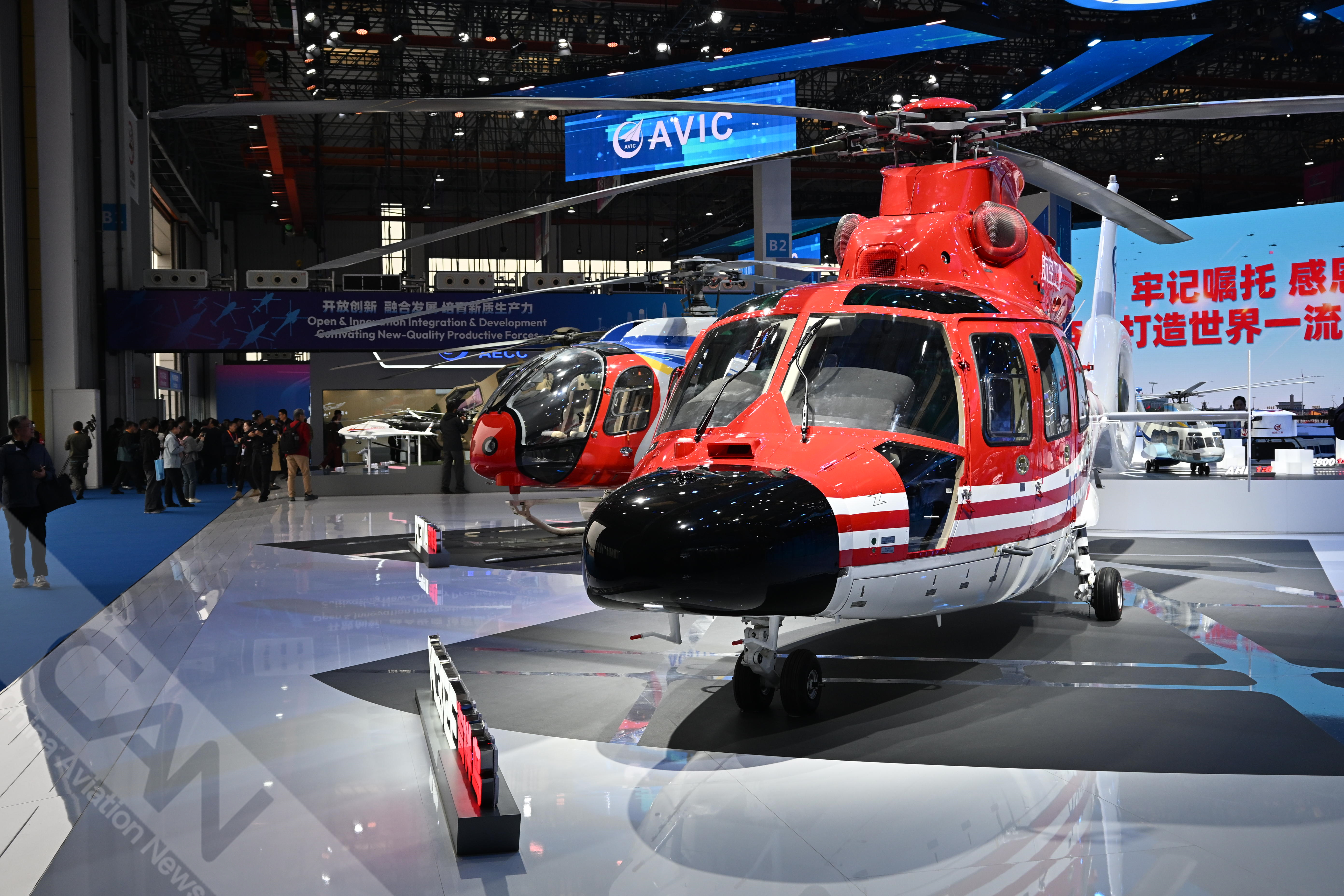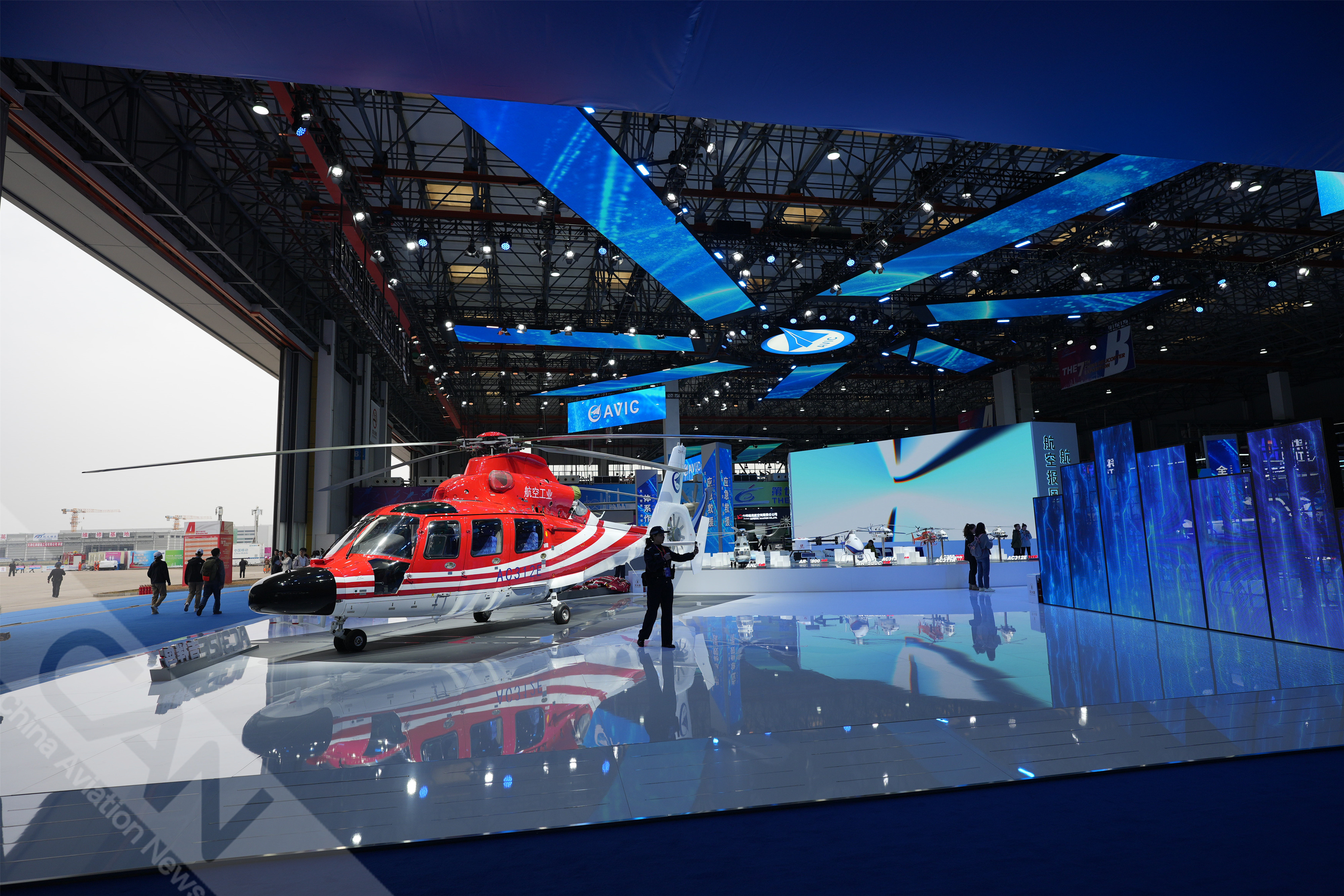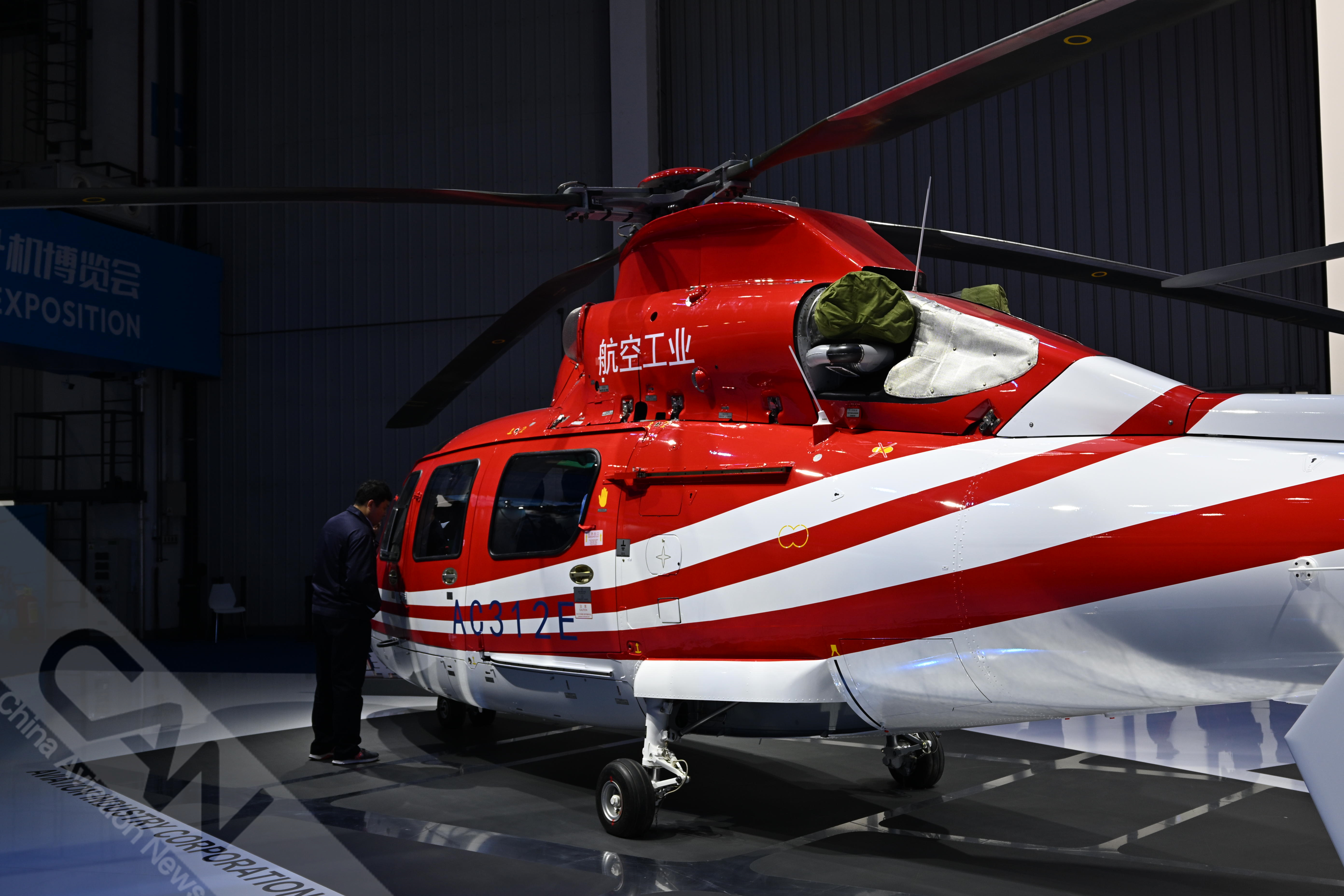 AC312E亮相第七届天津直博会室内展馆。AC312E是雷火体育(中国)集团响应国家通航产业发展研制的双发多用途直升机。摄影:吴紫磨