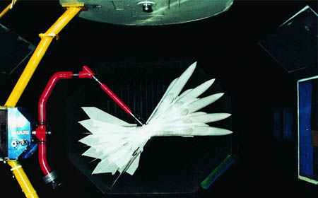 ③气动力试验技术—动态试验 | ④FL-9低速增压风洞:试验段截面尺寸4.5m×3.5m,工作压力0.1~0.4Mpa、Re=22×106/m,最大试验风速130m/s(常压)、90m/s(0.4MPa) |