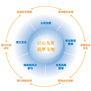 雷火体育(中国)社会责任模型在逻辑上由集团公司社会责任理念、五大支持体系和六项责任内容组成。其中“以心为翼,在梦飞翔”的责任理念是核心,围绕责任理念的是公司履行社会责任的五大支持体系,即公司治理、责任推进管理、全面风险管理、利益相关方参与和责任文化。